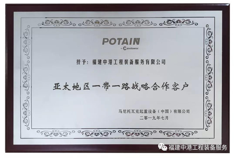 作為一家綜合性專業化工程裝備服務公司,中港公司立足“高起點建設、高質量管理、高效能運作、高標準服務”的高地平臺,始終如一堅持規(guī)范運作、科學管理,憑借全方位的技術支持、強大的設備實力和安全可靠的安裝維修能力,贏得了顧客的忠誠和美譽。先后榮獲“中聯重科五千萬級戰(zhàn)略合作伙伴”、“中建二局第一建筑工程有限公司AAA誠信供方”、“第十三屆全國建筑機械租賃企業設備管理優(yōu)秀單位”、“中建二局第一建筑工程有限公司2015年度優(yōu)秀分供方”、“中建海峽建設發(fā)展有限公司2016年優(yōu)秀合作企業”、“中建三局集團有限公司(粵)2017年度良好合作單位”、“2018年全國建筑施工機械租賃50強企業”、“廣東省建筑機械租賃、安裝企業信用評價B級”、“2020年中國塔機租賃50強”等。